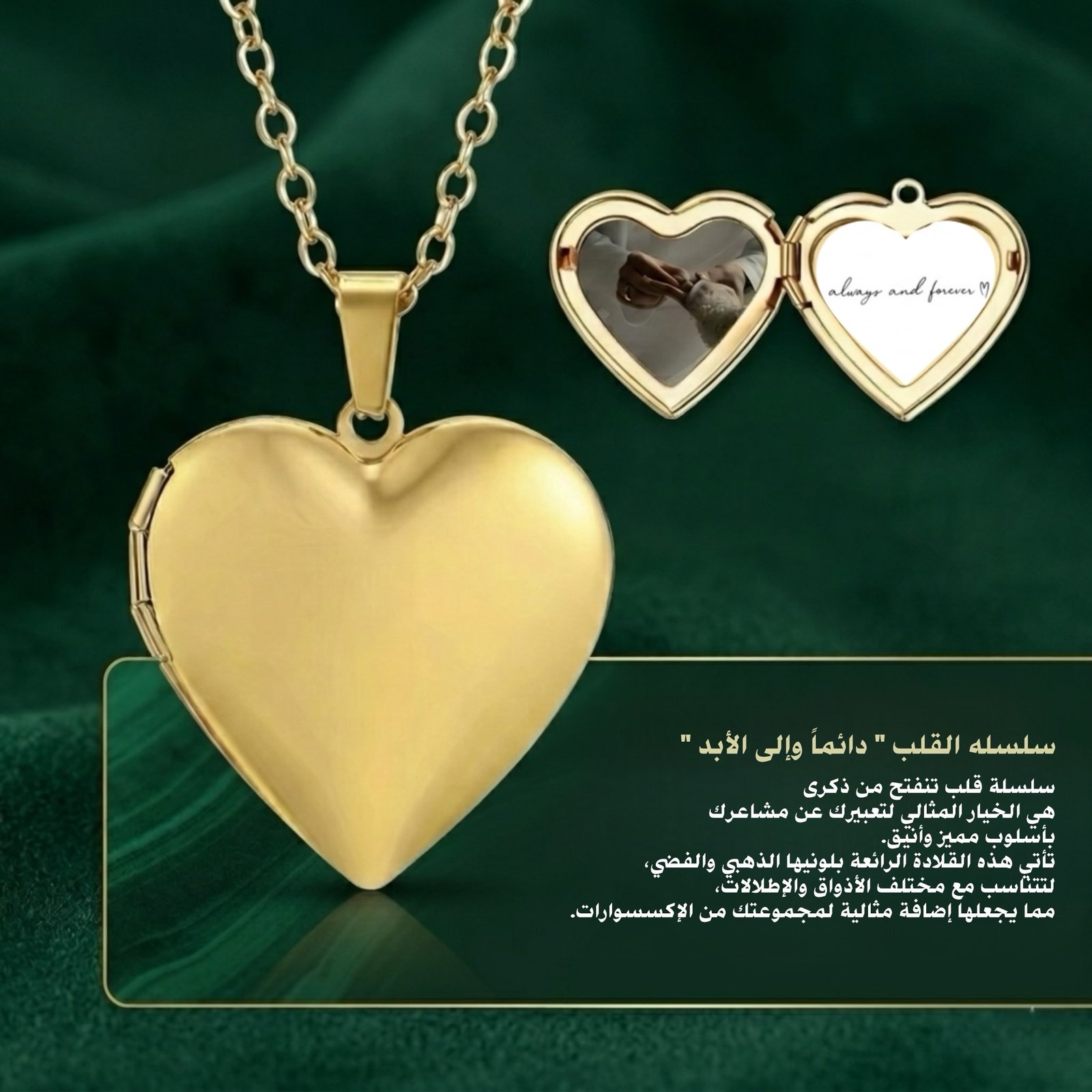 سلسلة قلب تنفتح من ذكرى هي الخيار المثالي لتعبيرك عن مشاعرك بأسلوب مميز وأنيق. تأتي هذه القلادة الرائعة بلونيها الذهبي والفضي، لتتناسب مع مختلف الأذواق والإطلالات، مما يجعلها إضافة مثالية لمجموعتك من الإكسسوارات.