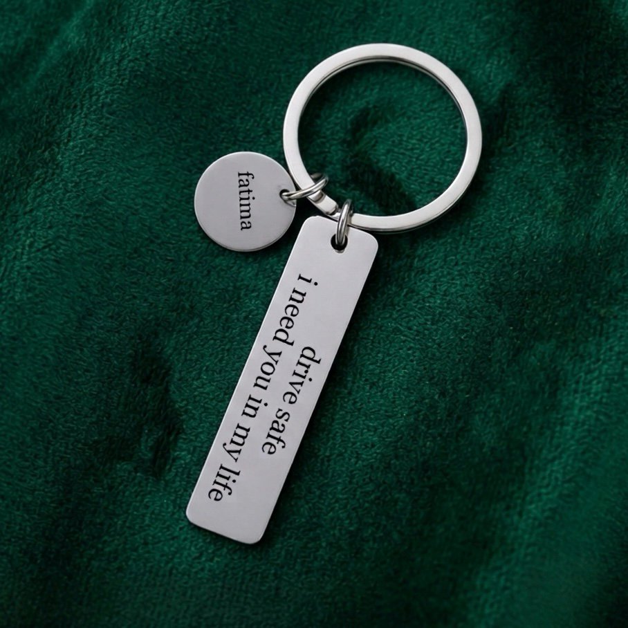 تُعتبر ميدالية المفاتيح مطبوعه بالاسم والعباره بنحت فني على جهتين تجسيدًا للأناقة والجمال وتتميز بشكلها المختلف حيث تضفي لمسة فريدة على مفاتيحك